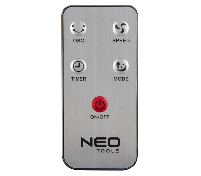 Samostojeći ventilator 45 W 40 cm 3 brzine NEO 90-002 idealan je za kućnu ili uredsku upotrebu. Kvaliteta potvrđena CE i ROHS certifikatima. Pogodan je za sve sezone. Opremljen je funkcijom protoka zraka pri 3 brzine (normalno, tiho, prirodno), te je moguća oscilacija lijevo-desno. Uz ventilator dobivate i daljinski upravljač za olakšano korištenje. Funkcija odbrojavanja za podešavanje vremena rada ventilatora može se namjestiti u rasponu od 0,5 do 7,5 sati. Motor je izrađen od 100% bakra. Snaga ventilatora je 45 W.