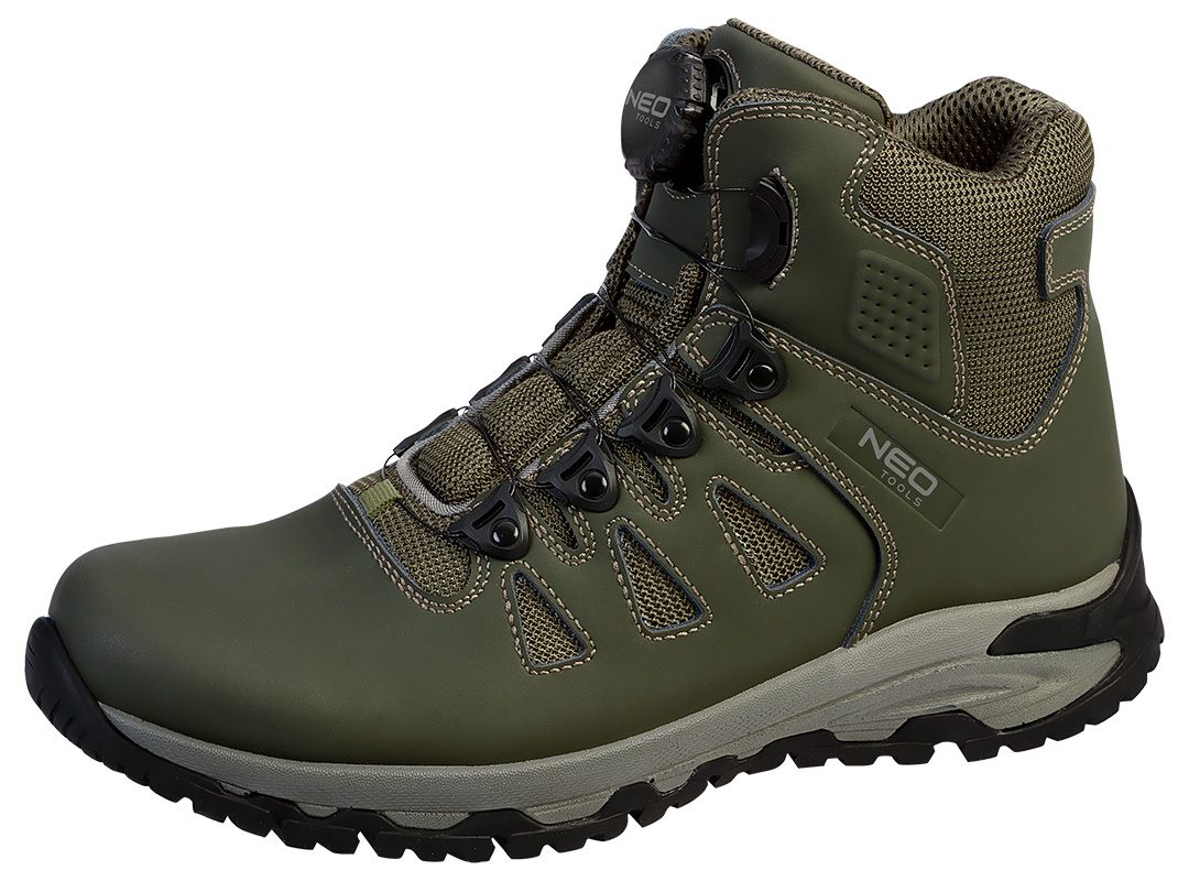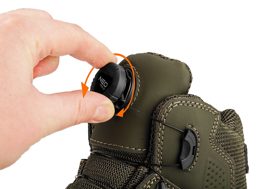 Radne cipele O2 SR FO brenda NEO TOOLS , sa zatezačom vezica, savršeno su rješenje za vikend izlete u šumu, izlete u planine, kao i za profesionalne poslove. Proizvedeni u zaštitnoj kategoriji O2 SR FO , pružaju otpornost na klizanje na keramičkim podlogama obloženim natrijevim lauril sulfatom (SLS) i na čeličnim podlogama obloženim glicerolom.